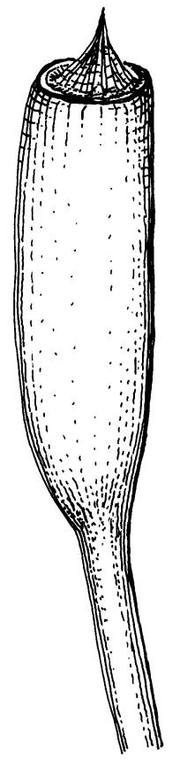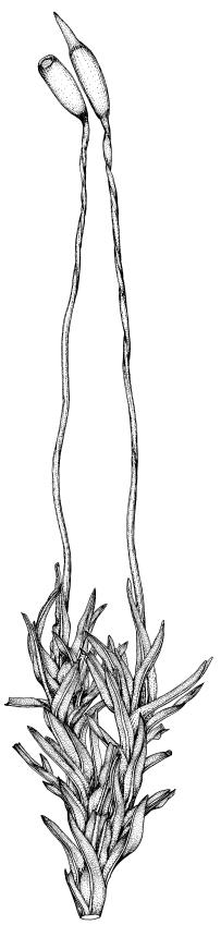 Reportedly dioicous. Perichaetial leaves longer than vegetative leaves, with bases loosely sheathing the seta, upper portions flexuose when dry. Perigonia bulbiform at apex of male shoot. Setae slender, flexuose, red, 7–10(–15) mm. Capsules subcylindric, sometimes arcuate, pale brown, 0.9–1.0(–2.0) mm. Operculum bluntly rostrate, slightly oblique, ⅓–½ the theca length. Peristome c. 150 µm, pale, of 32 straight, narrow rami (sometimes partially conjoined), nodose, and very weakly spirally ornamented, from a very low basal cylinder. Spores 9–11 µm, smooth.