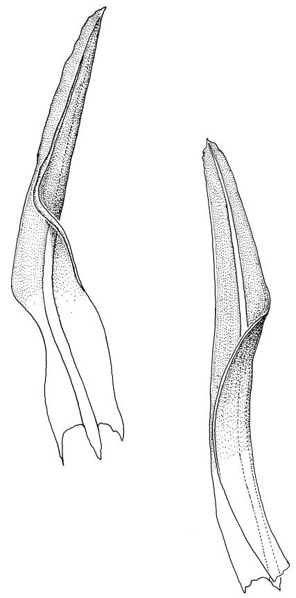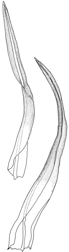 Features described for recognition of the genus Bryoerythrophyllum provide guidelines for both species. Shoots of B. recurvirostrum are more robust than those of B. dubium, with leaf margins ± recurved throughout their length. Differences in costal cross-section are given in the key.