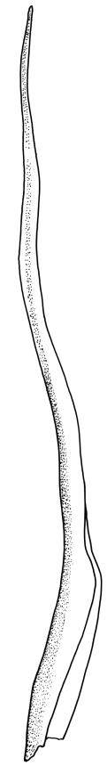 Plants yellow-green when fresh, becoming brown when dry and old. Stems c. 2–5 mm. Leaves neither sheathing nor strongly shouldered. Lower leaves mostly 1.5–3 mm, narrowly ovate-lanceolate, acuminate, serrulate above, entire or crenulate below, keeled, mostly unistratose but bistratose at margins. Upper leaves (including perichaetial) c. 4–7.5 mm, lanceolate-subulate, gradually tapered from a narrowly ovate base c. ⅕–¼ the total leaf length, with a slender and keeled subula that is nearly filled by the costa. Upper laminal cells (in leaves from below perichaetium), short-rectangular, rounded at corners, mostly 12–15(–21) × c. 6 µm and (1–)2–3:1, those at margin bistratose and projecting at upper ends. Costa (in leaves from below perichaetium) occupying c. ¼ the width of the leaf base and well defined, not filling the upper subula, spinose abaxially near apex by projecting cell ends.