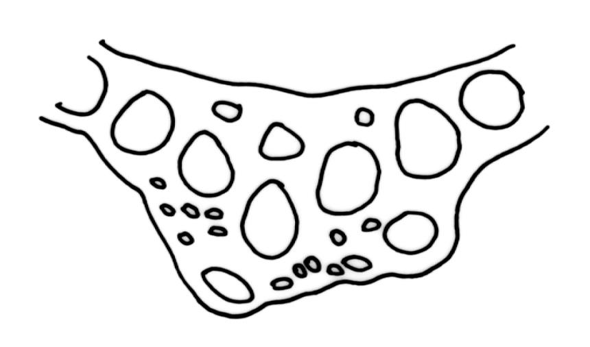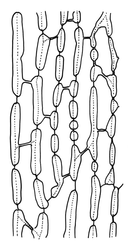 The bistratose nature of the alar cells in N.Z. material is often inconspicuous but, with care, can be observed under the compound microscope. A hand section of the alar region is readily accomplished and then the partially or predominantly bistratose nature of the alar group is obvious under either a stereoscope or compound microscope. The presence of a conspicuous group (not illustrated here) of non-pigmented, non-porose, and rather thin-walled cells between the alar group and the costa base is also a constant feature of N.Z. D. leioneuron.