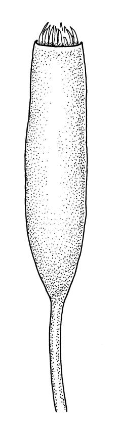 Autoicous. Perichaetia with outer leaves widely spreading, the inner narrowly lanceolate, apparently elongating after fertilisation and weakly sheathing the seta base. Perigonia scattered on stems and branches, axillary, gemmiform, often sparse, with ovate and widely spreading bracts, numerous antheridia, and filiform paraphyses. Setae yellow or pale-brown, straight or weakly flexuose, 10–15 mm, twisted to the left; capsules erect and narrowly cylindric, not constricted below mouth, 3–4 × 0.7–0.9 mm, smooth and scarcely altered when dry; exothecial cells irregularly oblong, firm-walled; stomata superficial, sparse and restricted to capsule base; annulus not seen; operculum obliquely rostrate. Exostome teeth red, c. 500 μm long and inserted c. 75 μm below the mouth, on outer surface with a nearly straight median line and broad plates, striate, on inner surface scarcely trabeculate; endostome arising from a very low basal membrane, segments linear, ± equal the teeth, narrowly perforate, keeled, and smooth; cilia lacking. Calyptra smooth, c. 3 mm. Spores 15–18 μm green, finely papillose.