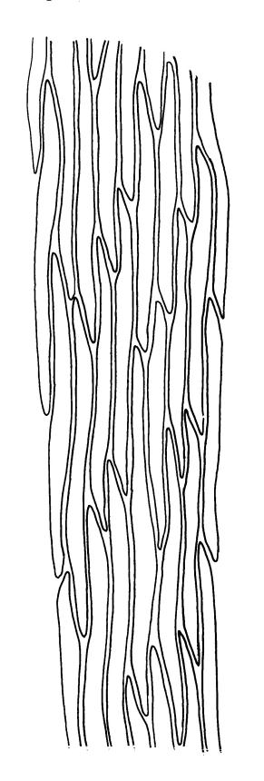 Stems of E. plicatus are relatively robust and variably complanate; many populations have leaves only weakly ranked and decidedly homomallous. In terms of leaf cell and sporophyte characters, however, the species is less variable. The oblong-lanceolate, weakly doubly costate or ecostate leaves, which are asymmetric and denticulate at the apex, are distinctive, as are the large groups of enlarged and oblong alar cells. The commonly-produced erect and narrowly cylindric capsule with its distinctive double peristome makes this species readily recognisable in N.Z. The exostome teeth have broad, striate plates separated by a nearly straight median line and lack adaxial trabeculae. The endostome with a very low membrane, elongate segments, and no cilia provides further distinction.