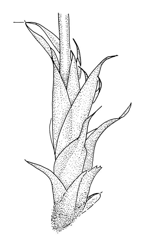Populations in which the leaves are decidedly homomallous could, if sterile, be confused in the field with rather large forms of Hypnum cupressiforme. Usually, however, the present species has leaves that are only secund at the stem-branch apices in contrast to the markedly falcate-secund leaves of the Hypnum. The nature of the alar cells in the two species is very different, as is the sexuality and the nature of the sporophyte.
