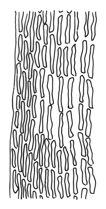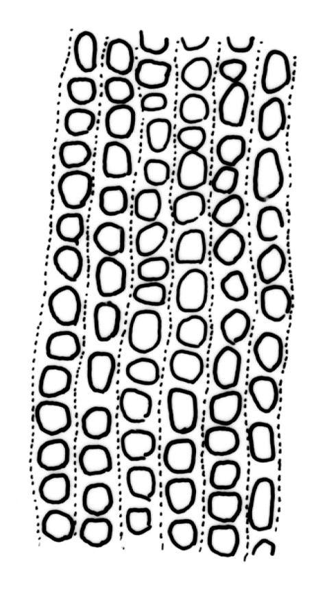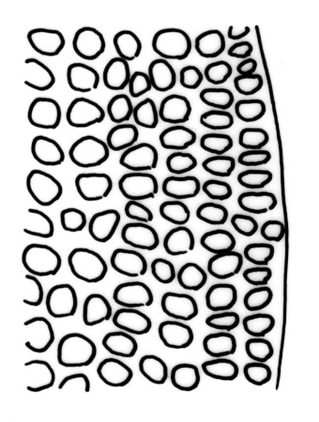Plants slender to moderately robust, ± dull, olive-green to yellow-brown above, dark green or brown below. Branches wiry and often long, to 25 mm, erect, mostly simple, penicillate at apices. Stem leaves erect-flexuose when dry, recurved-squarrose when moist, lanceolate-acuminate. Branch leaves spiralled around the branch and with apices twisted to one side or recurved when dry, spreading from a ± erect base and neatly funiculate when moist, broadly ligulate to oblong-lanceolate at maturity, usually ± broader below, retuse or obtuse and often asymmetric at apex, strongly keeled, (1.2–)1.5–2.5 mm; immature leaves with a linear, stiffly flexuose, and deciduous arista c. 1.0–2.0 mm long; margins entire, plane or weakly recurved on one side; upper laminal cells irregularly rounded-quadrate, thick-walled, in longitudinal rows, bulging, obscured by low, multiple papillae, unistratose, mostly 5–9 µm diam. (lumina c. 5–6 µm across); mid laminal cells thick-walled and mostly ± rectangular, usually sparsely papillose, mostly 7–14 × 7–8 µm; inner basal cells long-rectangular to elongate, irregularly thick-walled, with lumina straight or nearly so, smooth or with low, conical papillae, mostly 20–40 µm long, (lumina (2–)4–6 µm wide); marginal basal cells scarcely differentiated. Costa excurrent to form an arista (present only in immature leaves), the abaxial superficial cells elongate in mature leaves (covered by laminal cells on arista), in cross-section with c. 4–5 guide cells in 1–2 layers, 1–2 layers of abaxial stereids, and few or no adaxial stereids. Gemmae absent.
