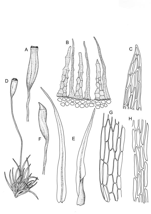 Shaw (2012) treated Orthodontium for Australia and recognised two species, O. lineare Schwägr. and O. pallens (Hook.f. & Wilson) Broth. [Nat. Pflanzenfam. 1, 3: 544, 1903]. He considered the latter species to be “possibly endemic to Australia” and distinguished it from O. lineare by a smaller stature and a more rudimentary endostome. Shaw also placed four Tasmanian or mainland Australia species into synonymy with O. lineare Schwägr.