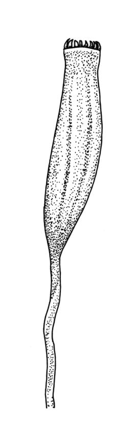 Polygamous (mostly paroicous or gonioautoicous). Perichaetia terminal, with leaves little differentiated. Antheridia usually in axils of outer perichaetial leaves (paroicous) or on short buds below the perichaetium, at the base of fruiting shoots (gonioautoicous), or sometimes terminal. Setae (4–)6–15(–20) mm, pale brown, rather slender, flexuose; capsules erect or inclined, obovoid-cylindric, pale brown or straw-coloured (1.5–)2.0–2.5(–3.0) × c. 0.75 mm, with a short ill-defined neck, weakly to clearly sulcate (8-ridged) and weakly constricted below the transverse mouth when dry; stomata superficial; annulus absent; operculum obliquely rostrate from a conic base, c. 0.5 mm long. Peristome double, fragile; exostome teeth linear-lanceolate, often rounded apically, yellow-brown, strongly inrolled and inconspicuous when dry, erect when moist, trabeculate, slightly papillose, with a nearly straight divisural line; endostome segments pale, longer than teeth (commonly 180–250 µm long), conspicuous when dry, linear, with bulging nodes, finely papillose, with no basal membrane or cilia. Calyptra small and cucullate. Spores spherical, (16–)18–22 µm, papillose-insulate.