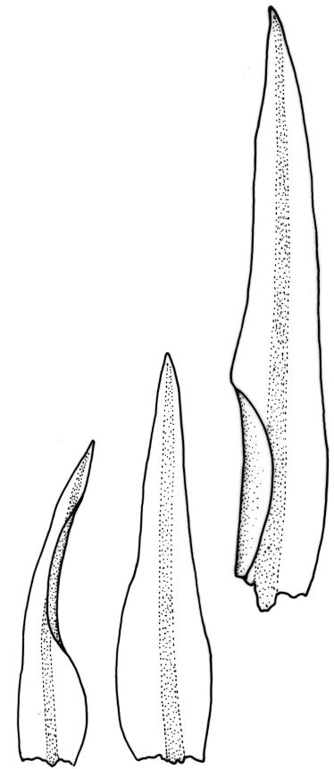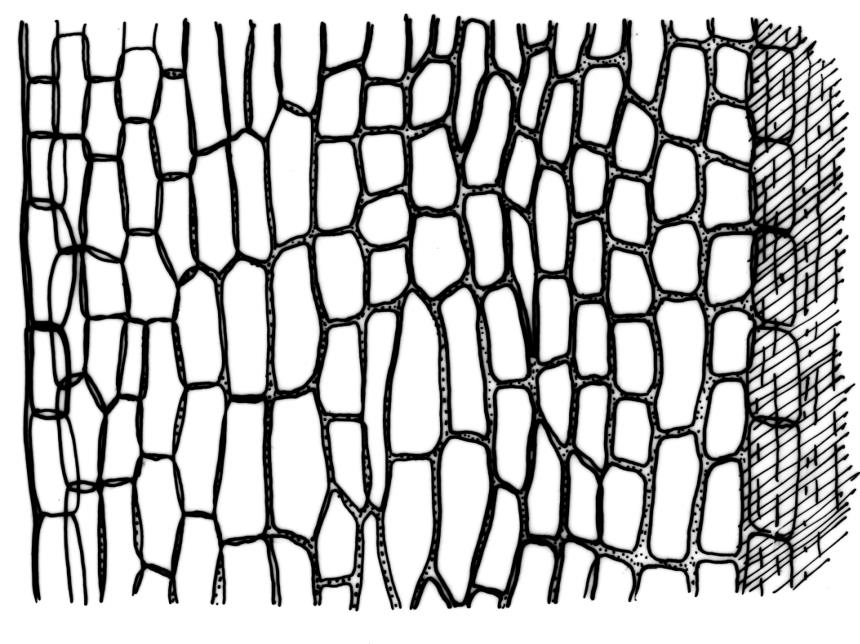 In the great majority of collections, the bistratose fraction of the upper laminae is extensive, and more pronounced near the leaf apices; an "isthmus" of unistratose laminae may be present adjacent to the costa.