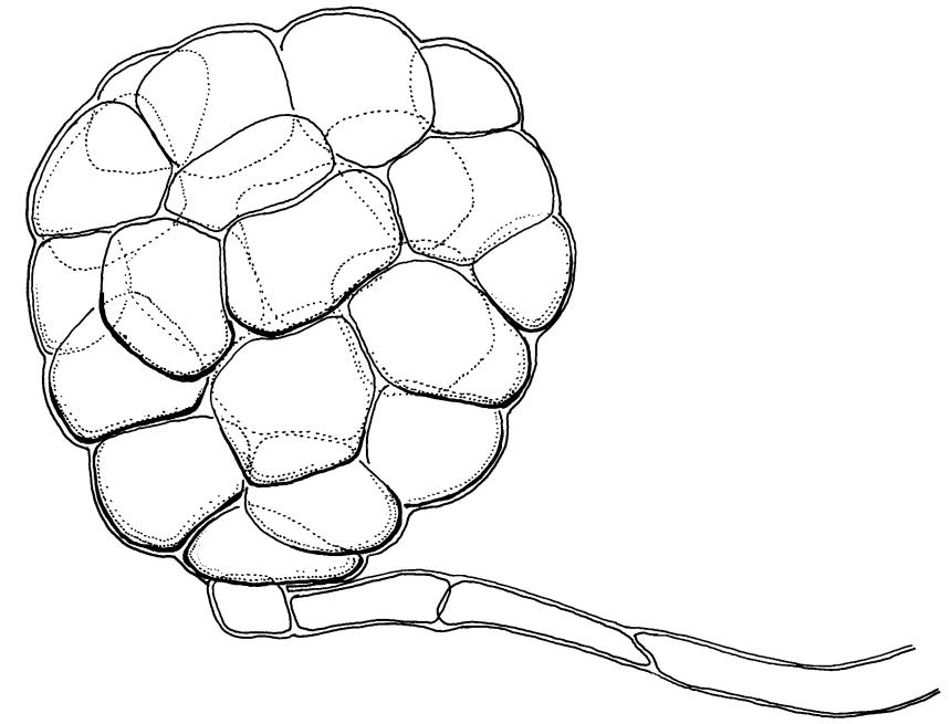 Perichaetia with leaves conspicuously sheathing the seta base and the inner leaves strongly differentiated, appressed, acuminate or rounded at apex from a long, tightly convolute base, with upper laminal cells vermicular and smooth. Perigonia not seen in N.Z. material. Setae slender, yellow, 10–16 mm. Capsules erect, asymmetric, subcylindric, tapering from near base to mouth, brown, becoming red at the mouth, with a well-developed annulus, 2.0–2.6 mm. Operculum long-conic, ⅓ –½ the theca length with cells spirally arranged. Peristome c. 1.0 mm, light brown, of 32 spiralled rami, densely spiculose, very weakly articulate, twisted several times to the right from a low basal cylinder. Spores 8–10 µm, smooth.