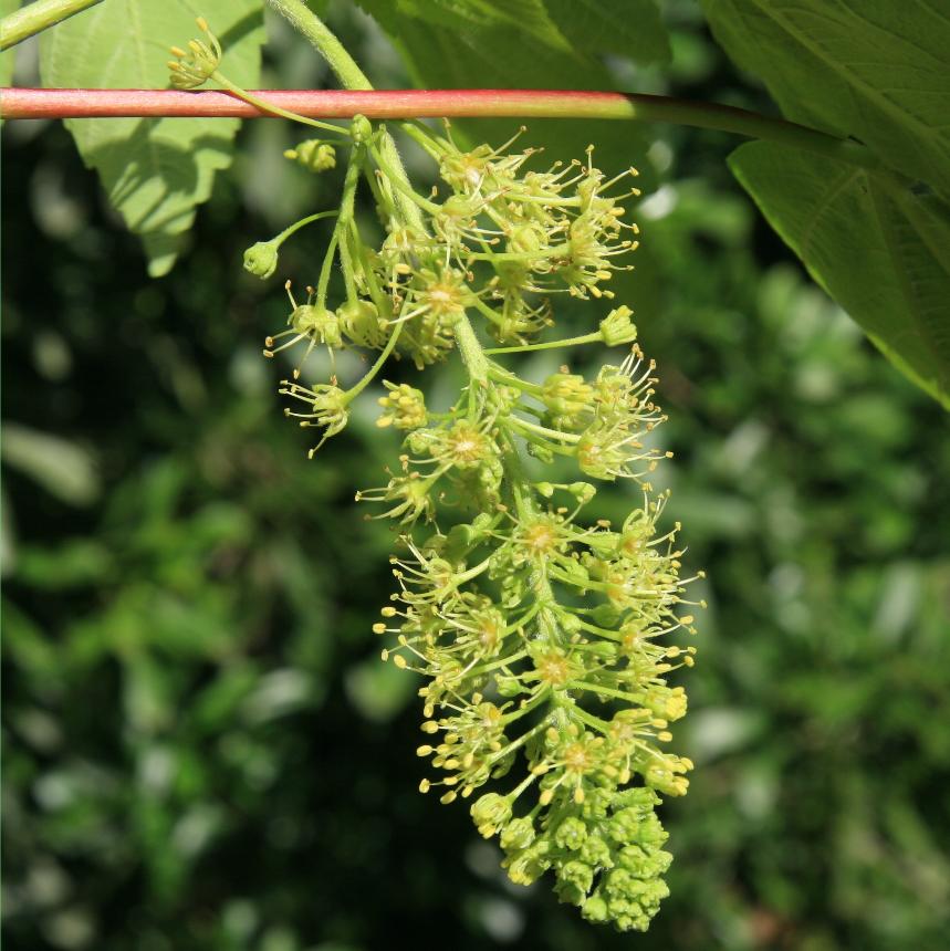 - these inconspicuous flowers are borne in branched or un-branched hanging clusters at the tips of the stems.