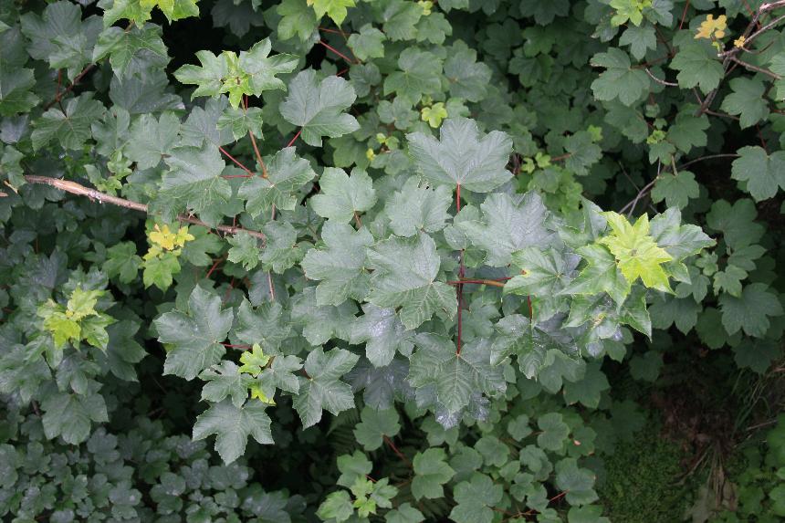 - its leaves are shaped like a hand, with 3-5 deep lobes that have toothed margins.