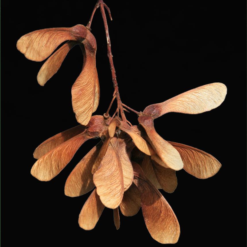 - its relatively large v-shaped fruit (3-5.5 cm long) consist of two prominently winged 'seeds' that are joined together at the base.