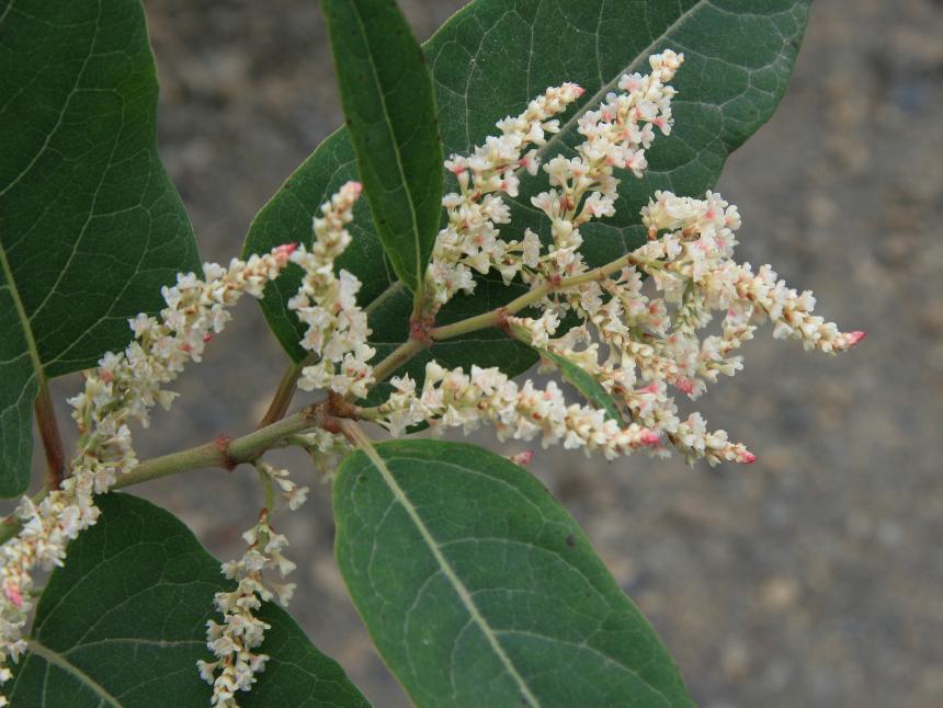 - its small whitish or greenish flowers are borne in large clusters, and male and female flowers are produced on separate plants.