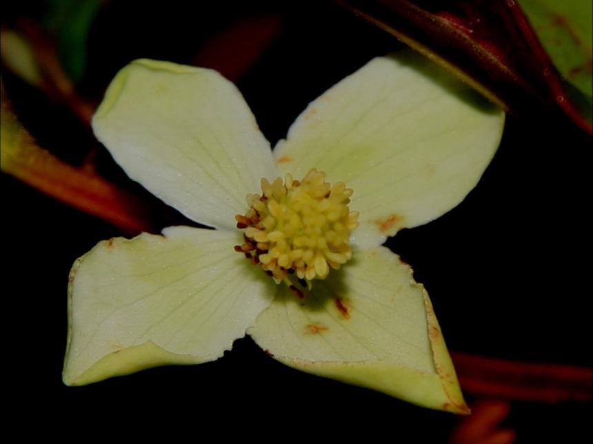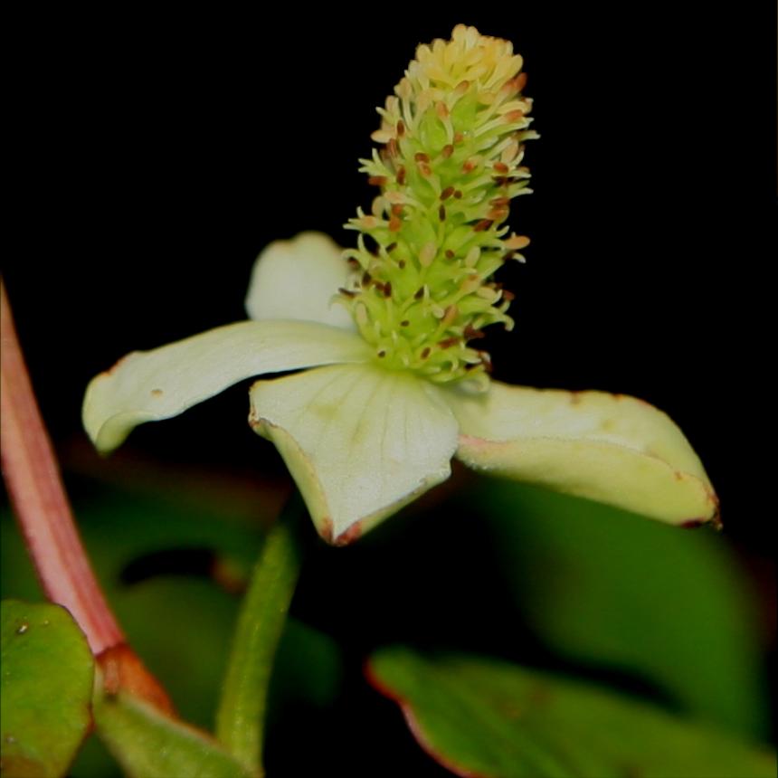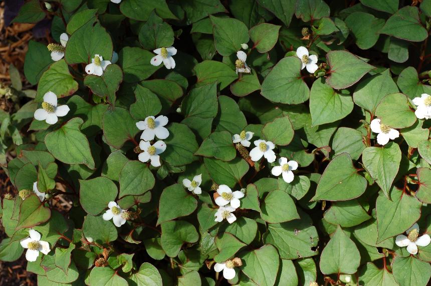 - its flowers are held above the leaves on short inflorescences and it has conspicuous white bracts that look like petals.
