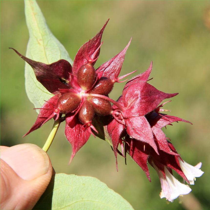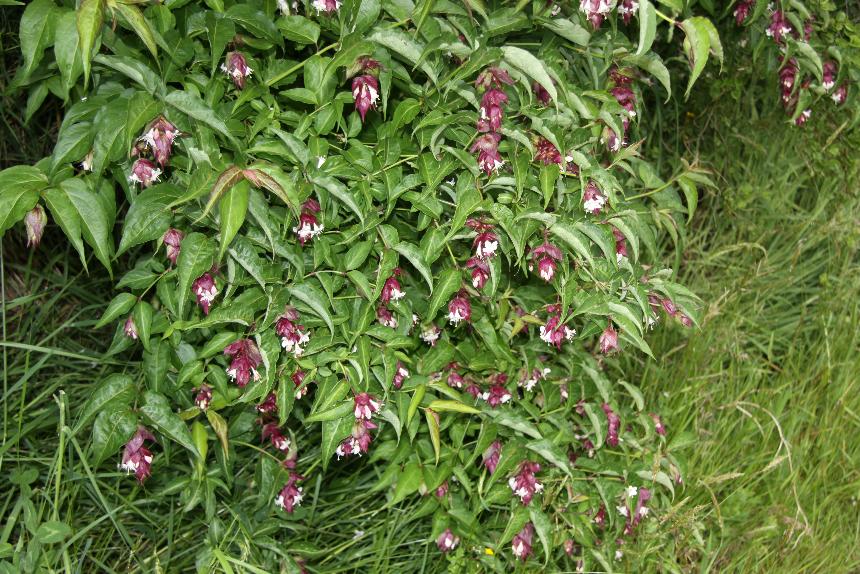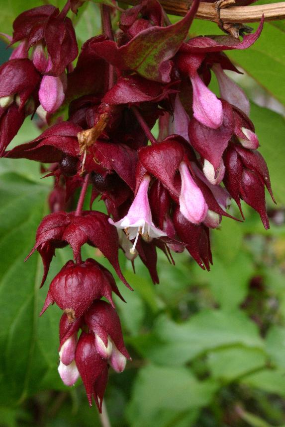 - its flowers are borne in compact drooping clusters (5-10 cm long) and are surrounded by purplish leafy bracts.