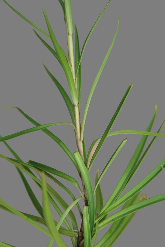 - its elongated and narrow leaves (7.5-20 cm long and 5-10 mm wide) are stalkless and hairless.
