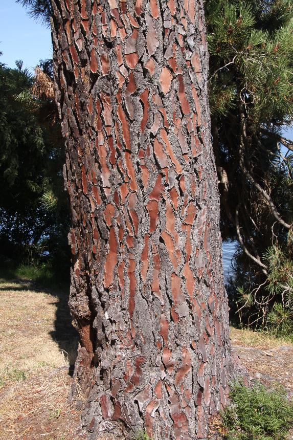 - a medium-sized to large tree with an open crown and a stout trunk that is bare of branches for most of its length and has thick, deeply fissured, dark red or reddish brown bark.