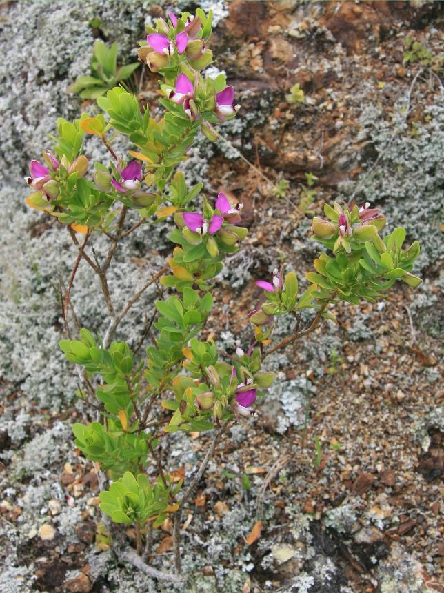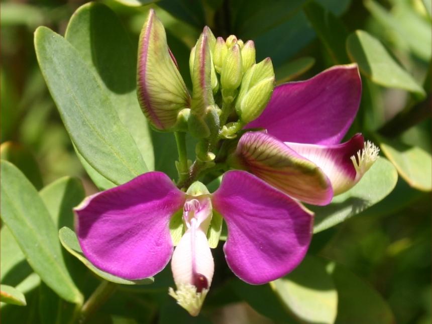 - its flowers (1-2 cm long) are bright pink to pale purple and closely resemble pea flowers.