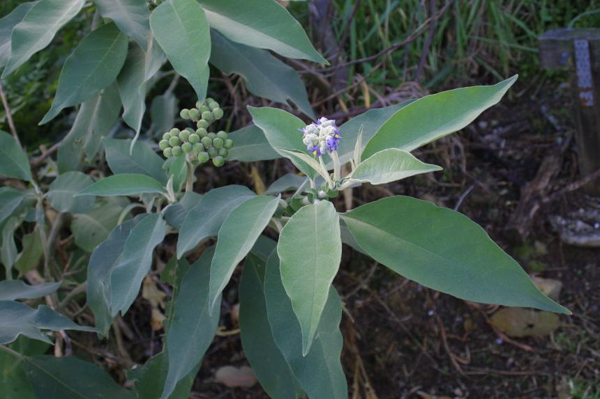 - its large leaves have entire margins and densely hairy undersides.