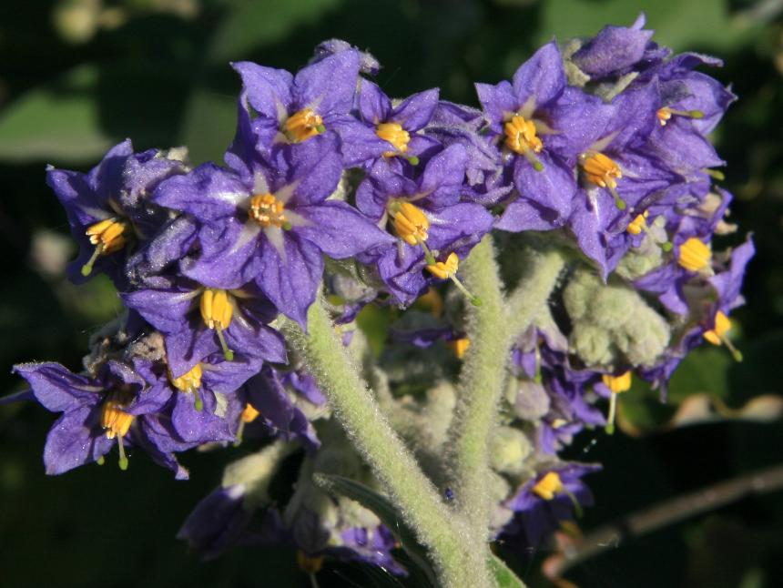 - its mauve or purple star-shaped flowers are produced in dense branched clusters.