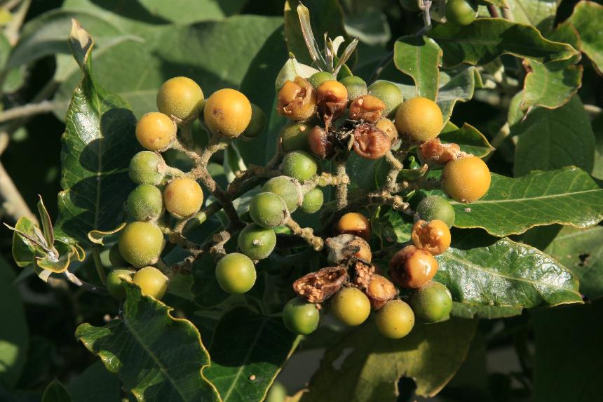 - its fruit are yellow globular berries (10-15 mm across).