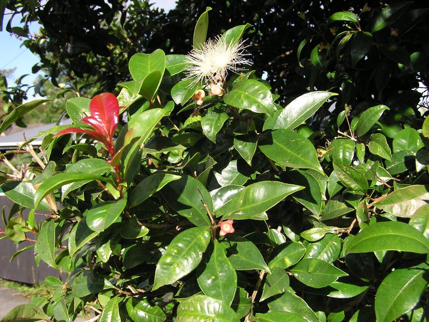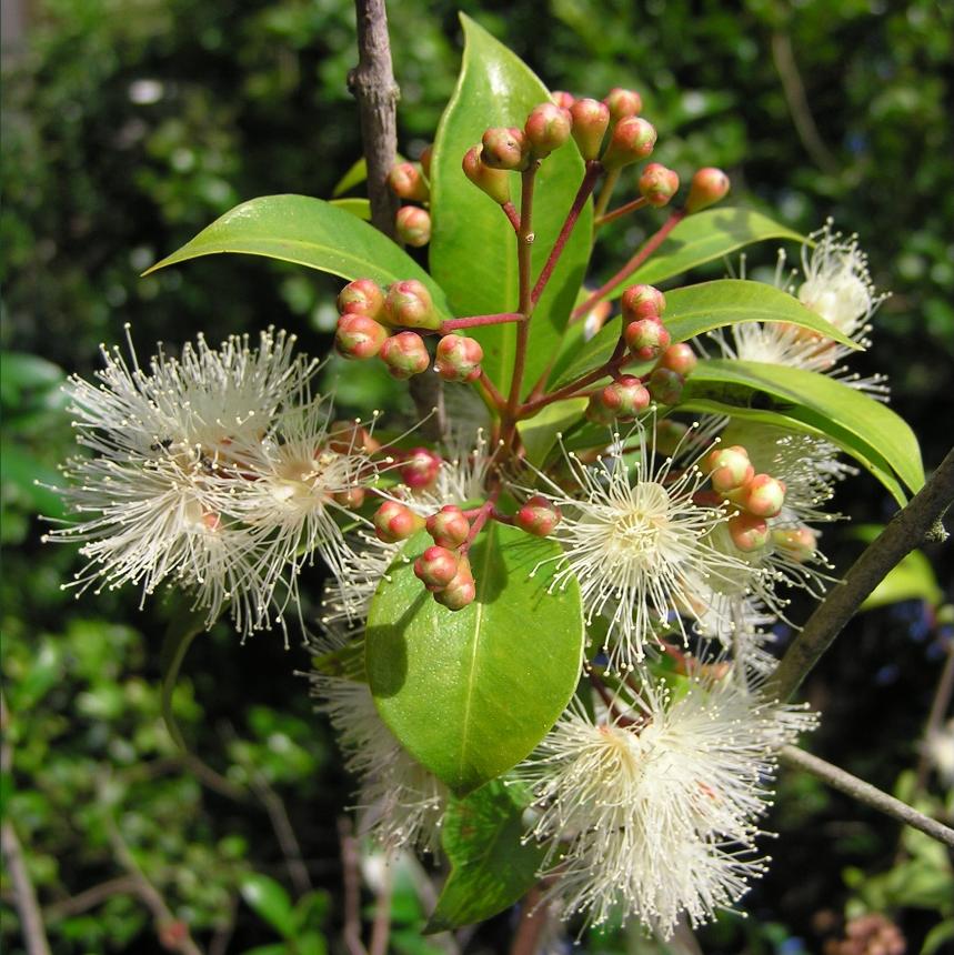 - its leaves are opposite, simple, glossy, leathery, dark green, and 4–8 cm long.