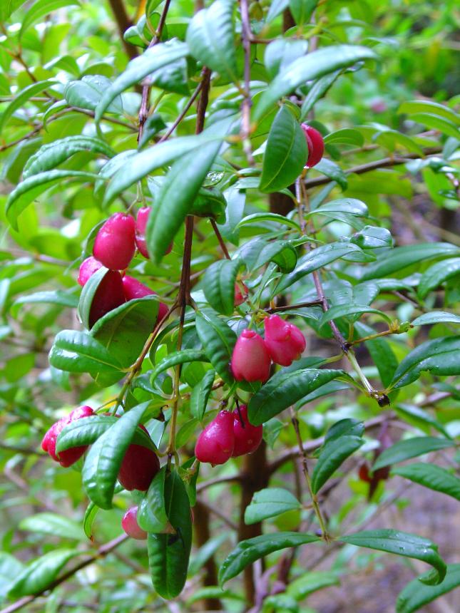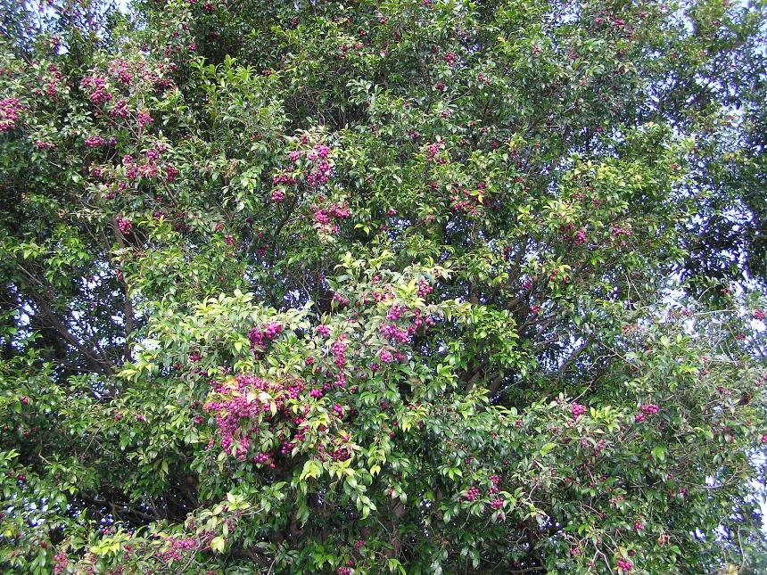- its dark pink to red fruits are about 2 cm long and contain a single large seed.