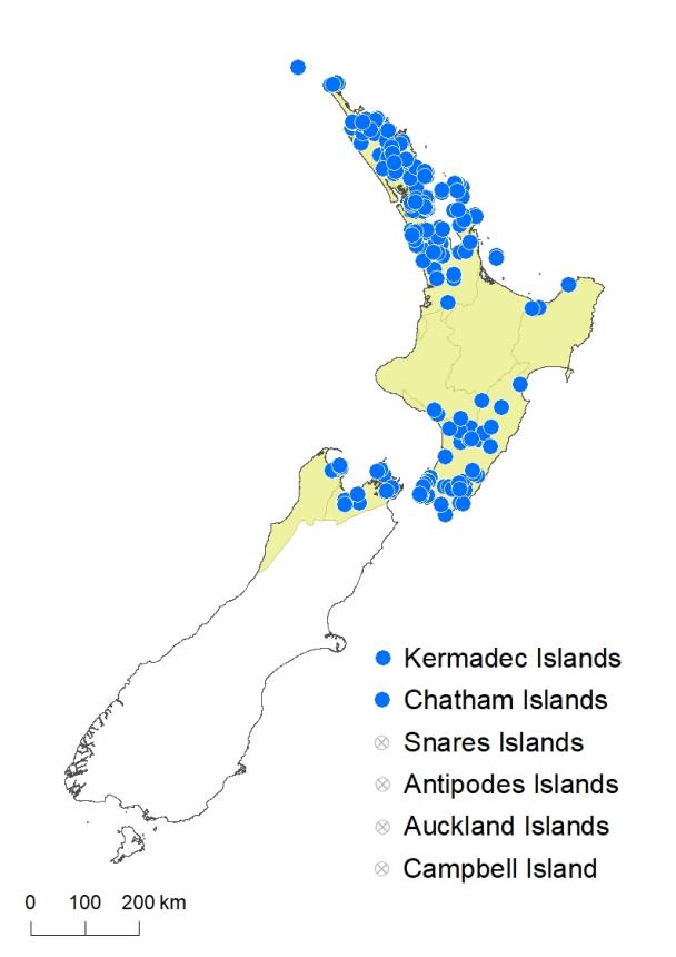 Kermadec Islands, Three Kings Islands, Chatham Islands.