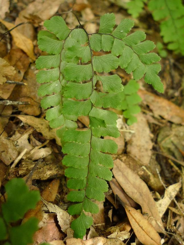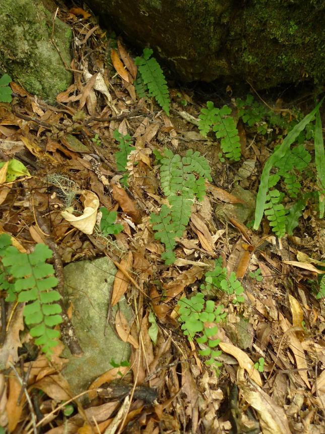 Adiantum diaphanum grows on the ground under podocarp and broadleaved forest, and under kānuka. It occurs on streambanks, river terraces, clay banks, under overhangs, wet rocks, track sides, and swamp margins in shaded sites.