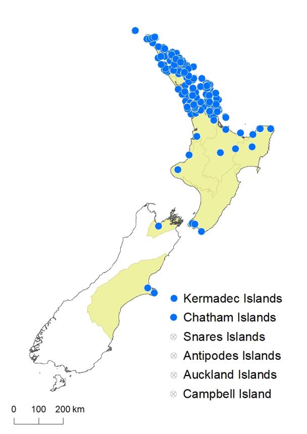Kermadec Islands, Three Kings Islands, Chatham Islands.