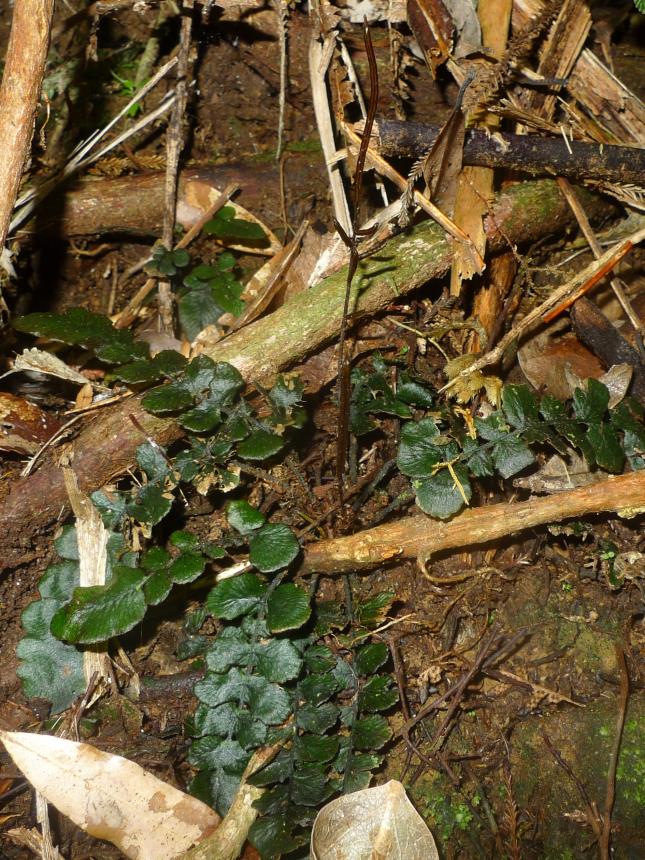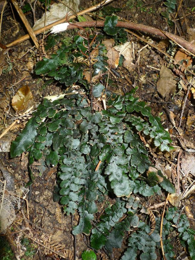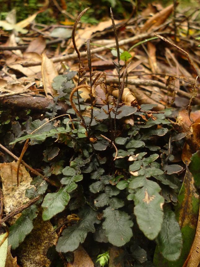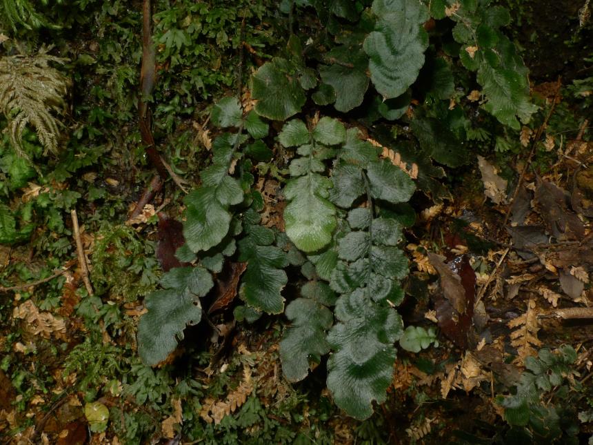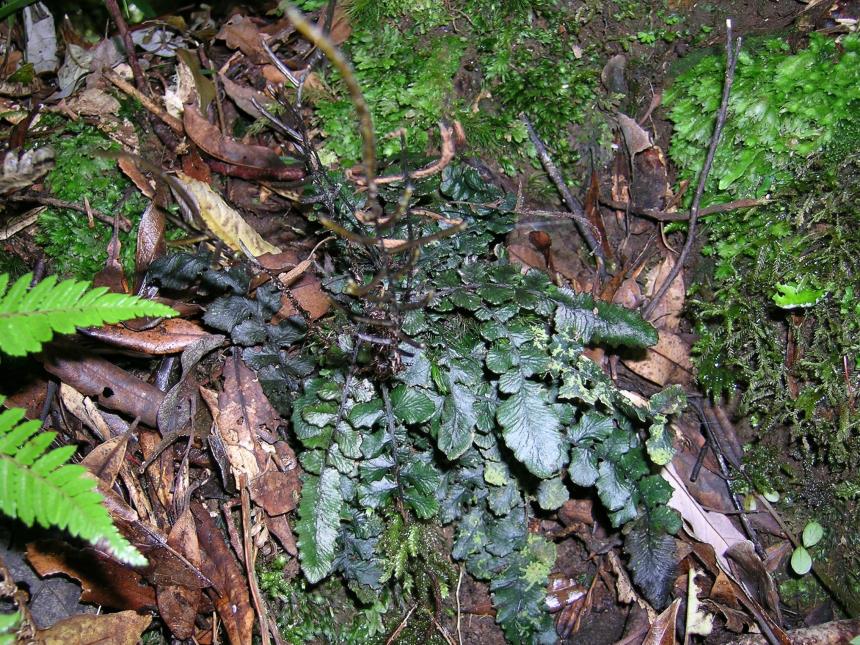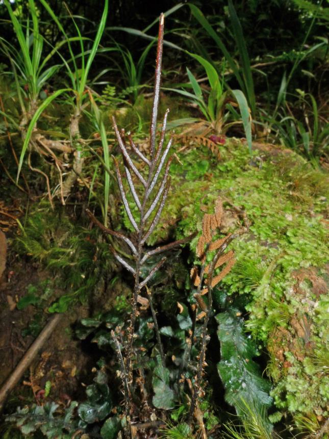 Blechnum nigrum is a terrestrial fern found in podocarp, broadleaved and beech forest. It grows on stream banks, in gullies, on damp rock faces and banks, between boulders, under tree roots, and on the ground in dark, wet forest.