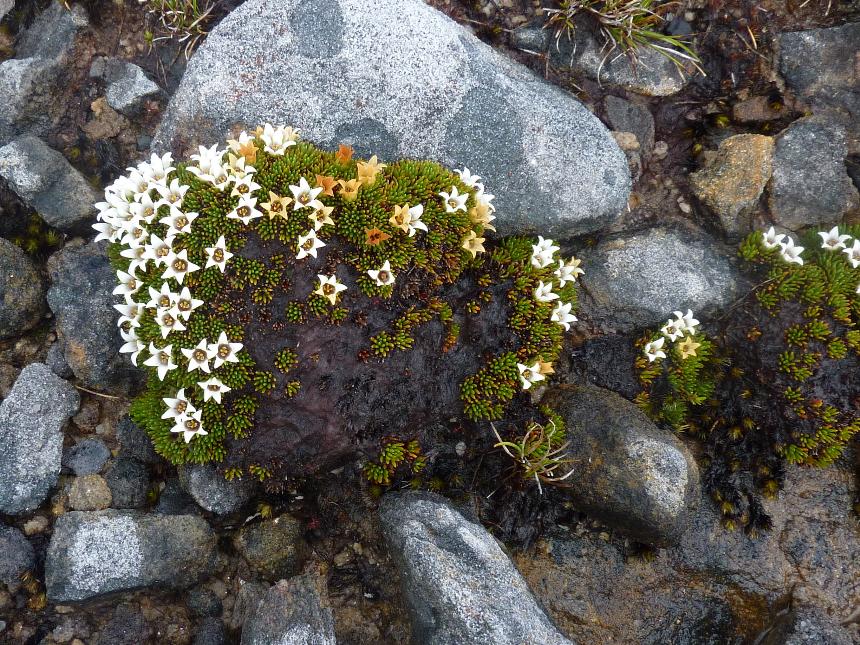 Very densely branched herb with erect crowded stems up to c. 10 cm. tall; forming compact, often broad, cushions. Branches and branchlets very densely clad in white floccose hairs. Lvs densely imbricate, long-persistent, appressed, linear-subulate to ligulate, ± 5–10 mm. long, thick, coriac., obtuse, glossy, ± hirsute at base. Fls sessile, solitary, mostly terminal, 8–10 mm. diam.; receptacle ± hairy at base. Calyx c. 1 mm. long; lobes 5, acute, ovate to broad-triangular; petals 5, c. 2–3 mm. long, white, rather fleshy, ovate-oblong, obtuse. Stamens 2, short, adnate to styles at base; anthers extrorse. Styles 2, short, thick, recurved, connate towards base; stigma capitate. Ovules on pend. apical placentae. Capsule indehiscent, ± 5 mm. long.