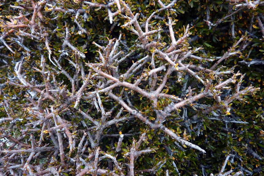 Divaricating shrub up to c. 1 m. tall; branchlets slender, flexuous, interlacing, ± tomentose. Juvenile lvs linear to narrow-oblong, irregularly dentate-serrate to pinnatifid, c. 1 cm. × 2 mm. Adult lvs aromatic, alt. or in alt. fascicles on arrested branchlets, 5–15 × 3 mm., linear, pinnatifid, mixed with lvs 5–10 mm. long, linear, lobed as in juveniles, and with others c. 5 mm. long, entire. Fls terminal on arrested branchlets or sts axillary. Sepals c. 1·5 mm. long, lanceolate-oblong; petals ciliolate, c. 3 mm. long, erose, yellowish with reddish margins. Capsules c. 5 mm. long, ovoid, 2-valved, valves submembr. Seeds 1–4, not immersed in viscid fluid, covered by papery membrane (endocarp).
