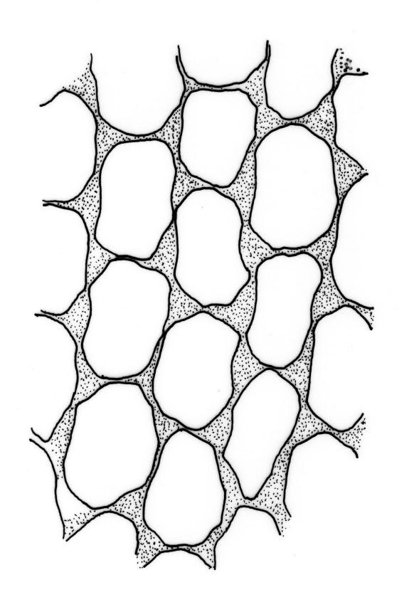 Plants yellow- or white-green, lustrous, ± caespitose, mostly on rotten wood. Stems irregularly branched, <10–15 mm, weakly ascendant, with smooth, brown rhizoids in fascicles on ventral surface, in cross-section lacking a central strand and hyaloderm. Branches short, mostly 3–5 mm. Leaves strongly homomallous, pointing away from, or parallel to, the substrate, narrowly ovate-lanceolate or lanceolate-acuminate, evenly tapered to a slenderly acuminate apex, moderately narrowed to insertion, weakly concave, plane or narrowly reflexed, entire, 0.8–1.3(–1.5) × 0.25–0.4 mm (under cover slip); mid laminal cells (upper third of leaf) linear-rhombic and pointed at ends, mostly 42–75 × 5–7 µm and c. 7–13:1, smooth, not porose; cells at leaf base becoming shorter and porose and a basal band often yellow; alar cells abruptly differentiated, usually 2–4 in extreme angles strongly inflated (c. 45 × 20–30 µm) and hyaline or pale yellow, with supra-alar cells few and irregular or more numerous and extending 4–5 cells up the margin.